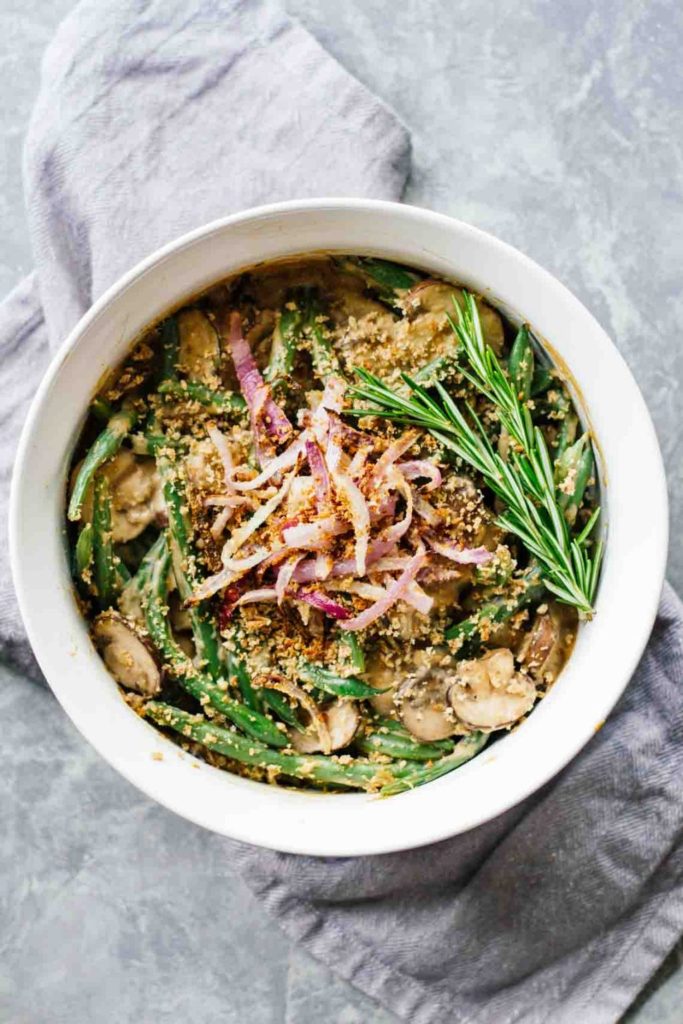 7. Vegan Green Beans Casserole with Rosemary Garlic Mushrooms by Jar of Lemons