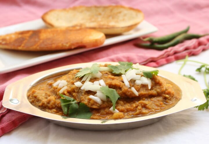 This Pav Bhaji recipe is a classic vegetarian meal that you will find being served at any laadi (street vendor) in India when the streets come alive with people bustling around in the late evening. It is a favorite meal for the people of India, and it is equally a go-to meal for our family here in the US. I love this Pav Bhaji recipe especially since it is a quick one-pot vegetarian meal for busy weeknights and it packs a powerful, nutritious punch!